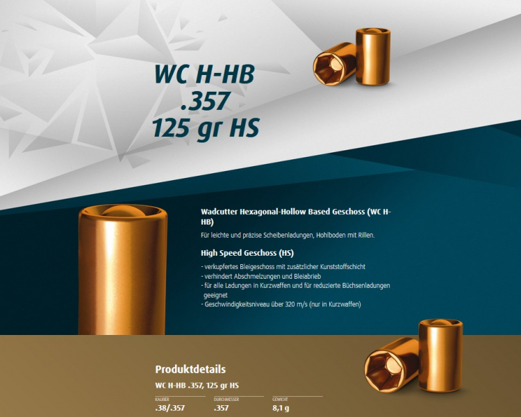 H&N Geschosse .357 WC H-HB HS 125gr. 500St.