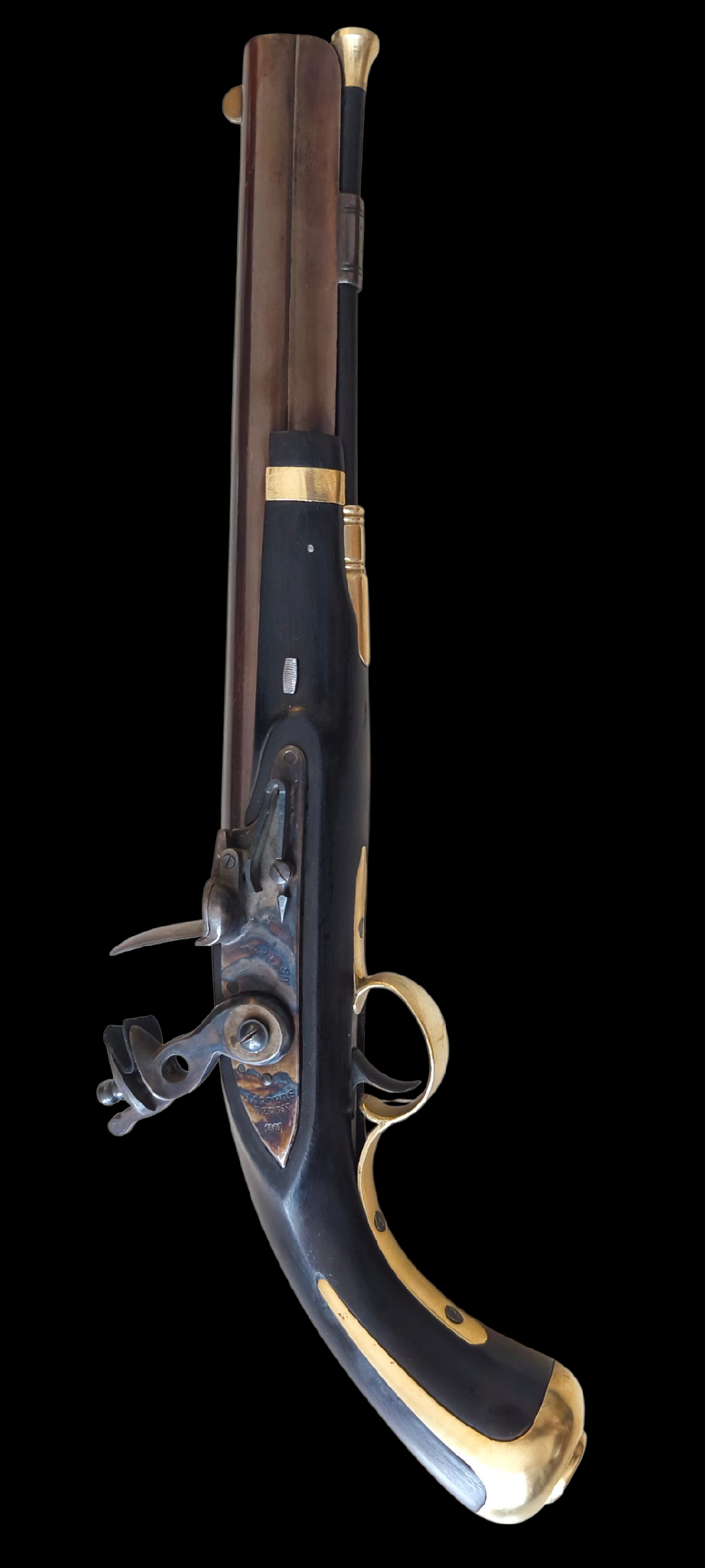 Die Steinschlosspistolen aus Harper’s Ferry, Modelle 1805, 1806, 1807 und 1808, waren im Wesentlichen identisch und wiesen Ähnlichkeiten mit den ebenfalls in Harper’s Ferry gefertigten Gewehren des Modells 1803 auf. Schätzungsweise existieren heute noch 200 bis 300 dieser Pistolen. Eine exzellente, hochwertige Replik im Kaliber .58, hergestellt von der Firma Pedersoli, ist erhältlich. Originalfotos dieser Waffe finden Sie auf der Website der NRA-Museen und ein Video dazu auf YouTube (1805 Harpers Ferry Steinschlosspistole). Sie verfügt über einen gezogenen Lauf. Die Waffe ist nummeriert, wiegt ca. 1,15 kg und ist 43 cm lang. Weitere Angebote finden Sie in meinen anderen Online-Angeboten. Der Versand mit Sendungsverfolgung innerhalb der EU kostet 15 €.Sie können auch meine Website besuchen und bei Interesse an einem Produkt direkt ein Angebot abgeben. (oldgun.fr)