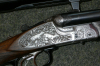 Heym-Kastenschloß-Drilling mit langen Seitenplatten und Sicherungshebel auf dem linken Schloßblech. Die Waffe ist voll graviert auf rechter Seite - Rehwild und linke Seite - Rotwild. Die Waffe hat das Kaliber 16/70-7x65R und einen Einstecklauf VVV, im Kaliber .22 Hornet. Montiert ist mit SEM ein Zeiss Diatal Z 8x56 Abs.: 1, oh. LA. Die Waffe hat einen ausgesucht schönen Nußbaum-Ölschaft mit sehr guter Maserung und Gummi-Abschlußkappe. Die Schaftlänge beträgt 37,0 cm. Die Rohre sind blank und die Waffe macht einen sehr gepflegten Eindruck. Der Schaft hat ein paar winzige Gebrauchsspuren. Die verschwinden fast in der guten Maserung des Holzes. Die Brünierung hat ein paar kleine Stellen, siehe Fotos. Die Waffe kann auf Wunsch, gegen Mehrpreis, eingeschossen werden.