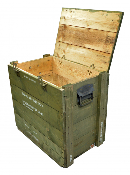 Holz-Munitionskiste aus Bundeswehr-Beständen.