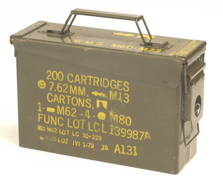 Munitionskiste aus Metall der U.S. Army für vielseitige Verwendungsmöglichkeiten (ohne Inhalt!). Platz für 200 Patronen Kaliber 7,62.