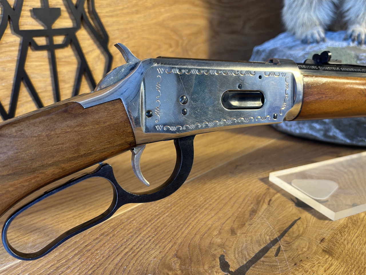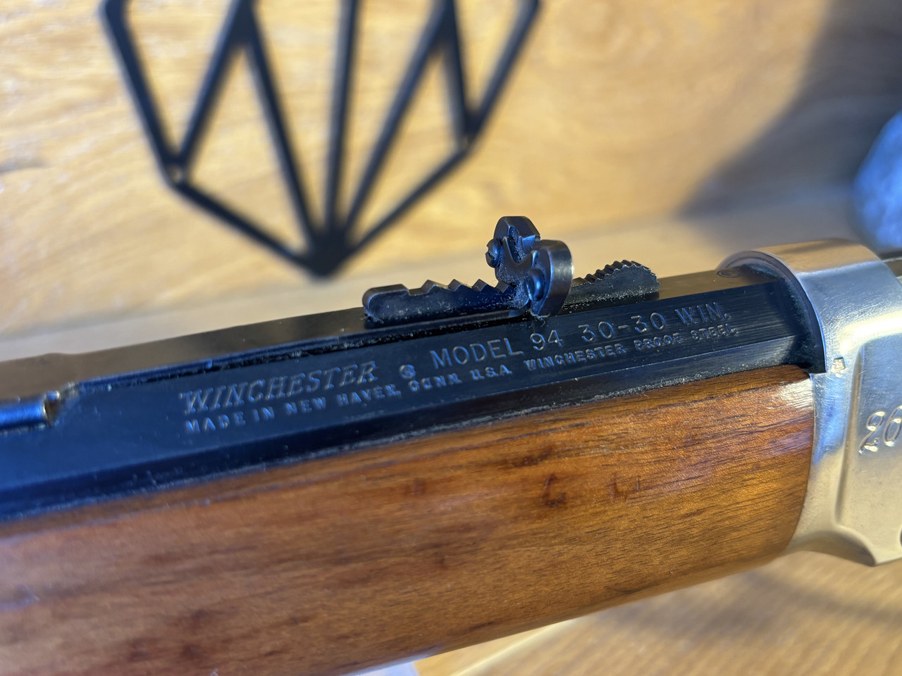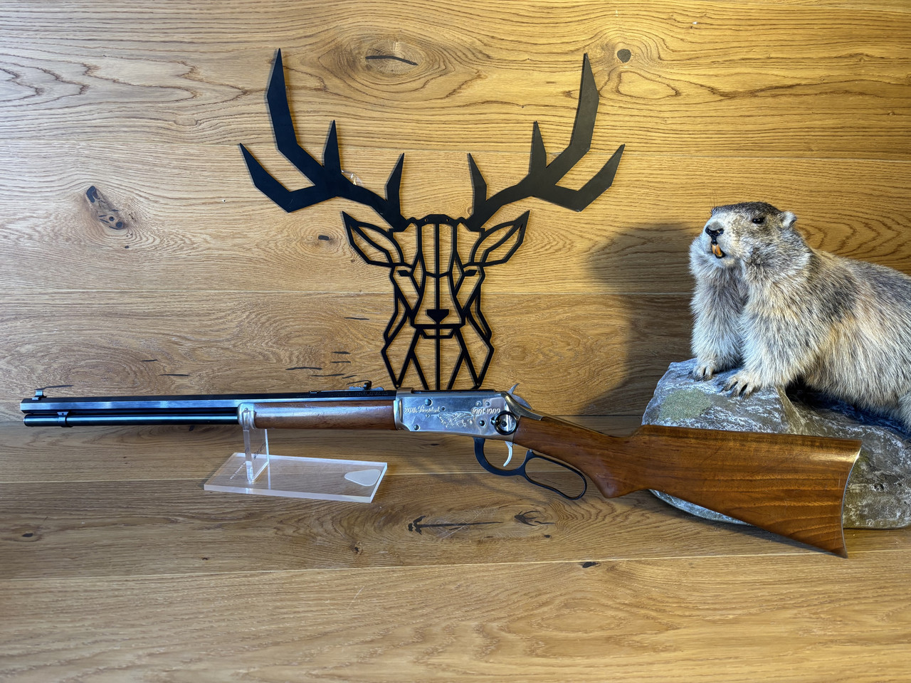 Kaliber: .30-30 Win Model: 94 Lauflänge: 20" (51cm) Baujahr: ca. 1969 Buckhorn Visierung Jubiläumsbeschriftung „26th President 1901-1909“