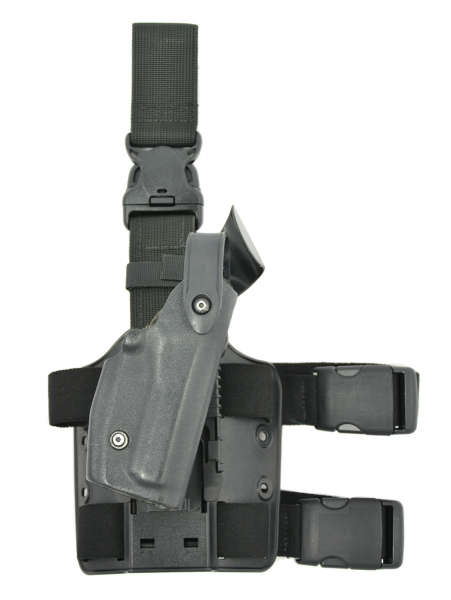 Original Safariland "STX Tactical" rechts Polizeiholster für das Tragen der Waffe am Oberschenkel mit Befestigungsschlaufe für den Gürtel. Eine extra Trageplatte für Befestigung nur am Gürtel wird mitgeliefert!