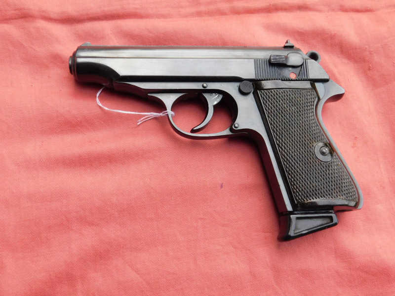 Walther Zella Mehlis Kal. 7,65 br. Waffe könnte überarbeitet sein. Auf der rechten Schlittenseite nur Waffennummer und ac. Deutscher Nachbeschuss. Magazin mit Verlängerung aus Ulmer Fertigung. Guter Gesamtzustand.