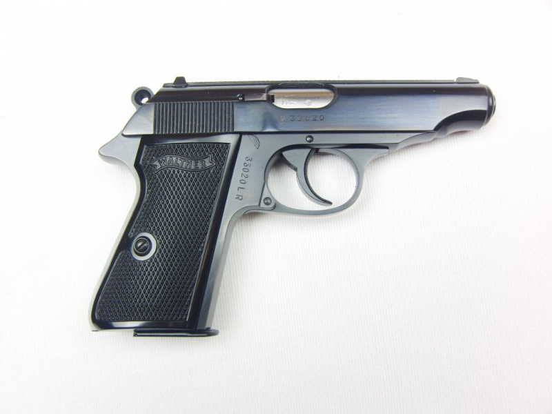 Sie bieten auf eine halbautomatische Pistole Walther Mod.PP im Kaliber .22lr. Nitro-Beschuß 1971. Stahl-Griffstück, Hochglanzbrünierte Ausführung mit 98mm Lauflänge und fester Visierung (Lauf von innen ohne Mängel), Double Action Funktion, außenliegender Hahn, Flügelsicherung, seitlicher Magazinhalteknopf, 8-Schuß Magazin. Schwarze Kunststoff-Griffschalen. Wenig geschossen. TOP-Zustand!!!
