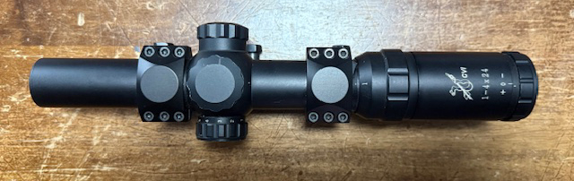 Drückjagdglas 1-4x24 von CV Innovation mit speziellem Dreipunktzieltechnik Absehen. Ich habe das Glas vier Jahre auf Drück- und Erntejagden geführt und gebe es jetzt wegen Neuanschaffung ab.
