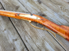 Nachbau einer leichten Jägerbüchse, entstanden aus einem amerikanischen Kit von Jim Kibler. Basis war der Kit einer Colonial Rifle von Kibler's Longrifles, der Green Mountain Lauf im Kaliber .50 wurde auf 81cm Länge gekürzt, Gesamtlänge 120,5cm, Abzugslänge ca. 35cm. Der Lauf ist konisch,von 29mm an der Schwanzschraube verjüngt er sich bis zur Mündung auf 20mm. Leichtgängiger, trockener Abzug und blitzschnelle Zündung. Gewicht ca. 3,8Kg. Sehr schönes Ahorn Schaftholz, Vorderschaftabschluss aus schwarzen Horn. Die Waffe hat einen amtlichen, deutschen Beschuss, Stempel im nicht sichtbarem Bereich auf der Laufunterseite.