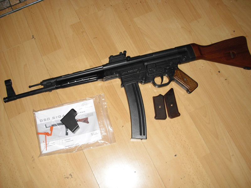 GSG STG44,Schreckschussgewehr,9mm PAK,Vollmetall und Echtholz,ist in einem neuwertigen Zustand,mit dabei ist ein Satz,etwas hellere Holzgriffschalen,sind auch montiert,ist PTB 1085.Versand ist mit DHL versichert,mit Sendungsnummer