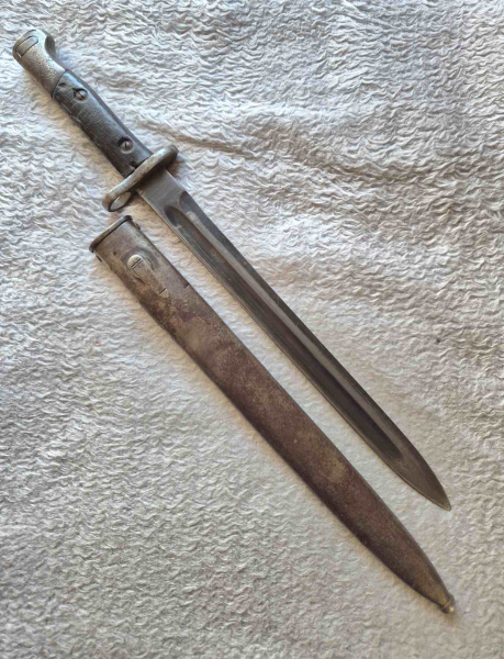 Ich biete hier ein Bajonett M1904 von Simson & Co Suhl mit Scheide, aus meiner Sammlung an. Der Hersteller hat sich auf der rechten Fehlschärfe verewigt. Den Zustand entnehmen sie bitte den Fotos, es handelt sich um ein authentisches und im Einsatz genutztes Stück mit Geschichte. Bei Fragen einfach melden. Versand in restliche EU 20,00Euro.