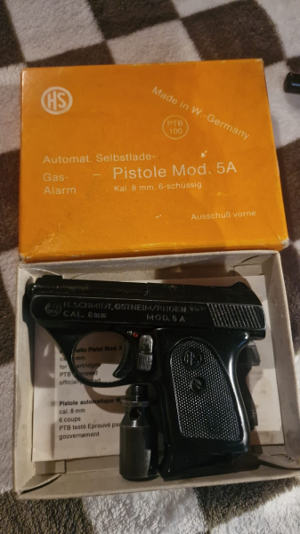 Zum Verkauf kommt eine HS 5A cal. 8mm mit Abschussbecher und org.Verpackung