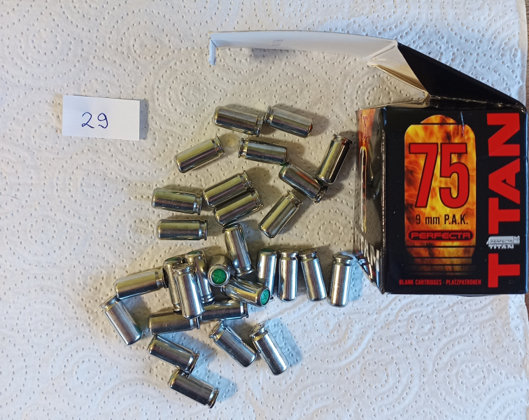 Biete hier einen Rest (29 Stk.) von 9mm P.A.K. Titan Knallpatronen an.