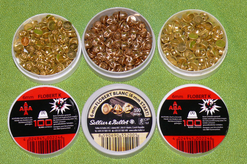 3 Dosen mit insgesamt 300 Platzpatronen Kaliber 6mm Flobert K, Neu in original Döschen.
