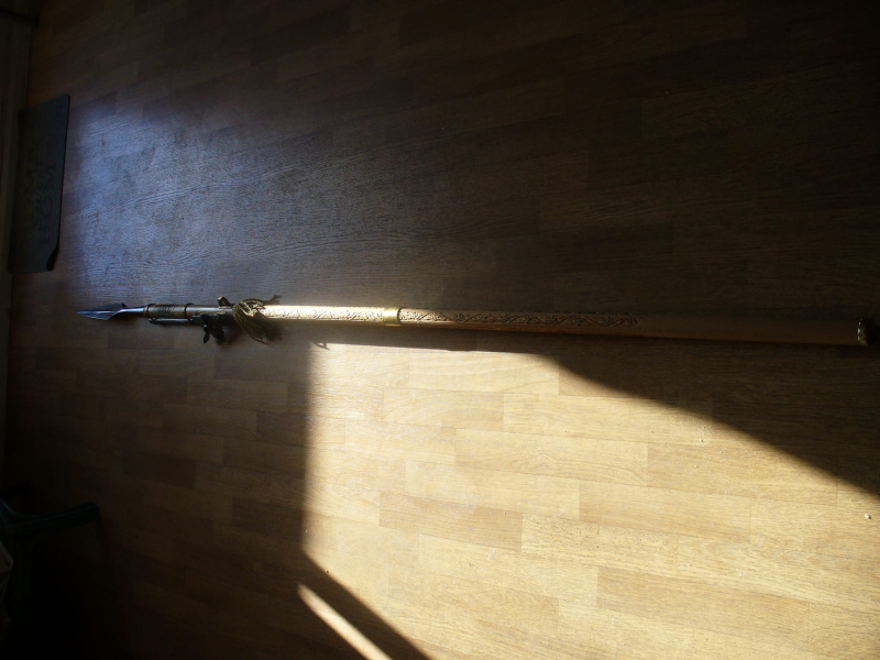 Es wird eine Paradejagd Lanze mit einer Feuersteinpistole angeboten. Die Gesamtlänge beträgt 2m.25 cm ist in drei Teile zerlegt. Der Holzgriff ist mit Schnitzereien bedeckt. Die Klinge aus Stahl ist vollständig graviert. Eine seltene Schönheit Sache mit einem sächsischen Wappen, um Ihre Sammlung zu schmücken.