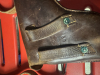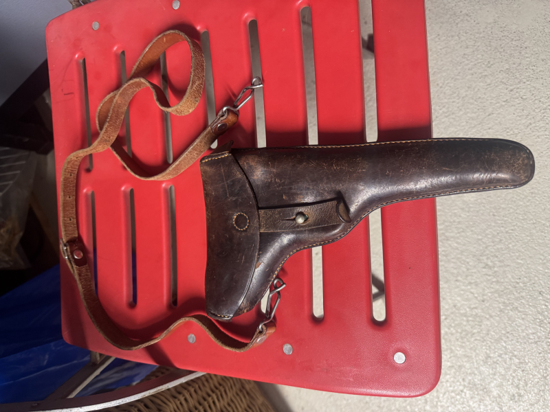 Biete diese abgebildete originale schweizer Parabellum Pistolentasche aus 1909 inkl. dem seltenen Umhänge Riemen. Erste ursprüngliche Ausführung noch ohne Fach für das Ersatzmagazin für die Modelle 00, 06, 06/24 und 06/29. Braunes, weiches Leder, keine Fehlstellen, alle Nähte in Ordnung, altersbedingte Gebrauchsspuren.