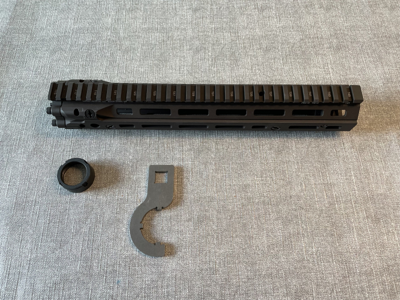 Daniel Defense RIS III 12,5 Zoll FDE Handschutz für Halbautomatische Büchsen Typ AR15. Der Handschutz selbst hat geringe Gebrauchsspuren. Die Laufhaltemutter weisst mittlere bis starke Gebrauchsspuren entstanden durch Montage und Demontage auf (siehe Bild). Enthalten sind der Handschutz, Laufmutter und Montageschlüssel. Die OVP ist nicht vorhanden. Es handelt sich um einen Privatverkauf. Der Verkauf erfolgt unter Ausschluss jeglicher Gewährleistung/Sachmängelhaftung