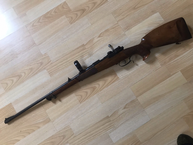 Von Privat an EWB : Eine Mauser 98 Büchse - vermutlich ein Kurzsystem ?? im Kaliber 6mm BR Norma - mit Magazin, aber eher ein Einzellader - Patronen sind meist zu lange - Beschuss 2013 - Lauf innen sehr gut - Einhakmontage, vorderer Ring ca 55mm. Der Schaft hat an der rechten Seite höhe System einen kleinen Riss - siehe Bild 3 , der Schaft ist jedoch stabil - Laiflänge ca 57 cm, Feinbazug - Schön geschnitzter Schaft - Kaisergriff - Technisch soweit ich erkennen kann in Ordnung - sehr guter Zustand, siehe Bild - Von Privat, daher keine Garantie oder Rücknahme - Versandpauschale 36,00 Euro mit Kurier - Auslandsverkauf prinzipiell möglich - jedoch nach Rücksprache - Bei Fragen oder mehr Bilder bitte melden !