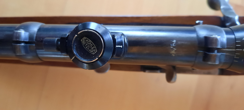 Ich verkaufe im Auftrag eines Kollegen wegen Aufgabe des Schießsportes ein Wehrsportgewehr Kaliber 22LR der Marke Mauser "Deutsches Sportmodell" Das Gewehr ist bestückt mit einem Zeitgemäßen Zielfernrohr der Marke E.Köhler Wetzlar, montiert auf einer gleichfalls Zeitgemäßen Montage der Firma AKAH gestempelt mit D.R.G.M. Das Zielfernrohr hat die Vergrößerung 2,5x62 und Absehen1. Die Durchsicht wie sämtliche Verstellungen funktionieren einwandfrei. Der Lauf ist bei Durchsicht blitzeplank. Ich habe das Gewehr Probegeschossen und möchte behaupten, mit etwas Übung hält es die 10 auf 100mtr locker. Dies ist ein Privatverkauf und schließt jegliche Garantie,Rückgabe sowie Umtausch aus. Bitte klären Sie offen Fragen vor Abgabe eines Gebotes mit mir ab,das erspart Ihnen und mir unötige Arbeit sowie Ärger. Sie kaufen was Sie auf den Bildern sehen. Bei Käufer aus dem benachbarten Ausland erfolgt der Verkauf nur über einen vom Käufer benannten Waffenhändler aus Deutschland. Das Porto gilt nur für das Inland.