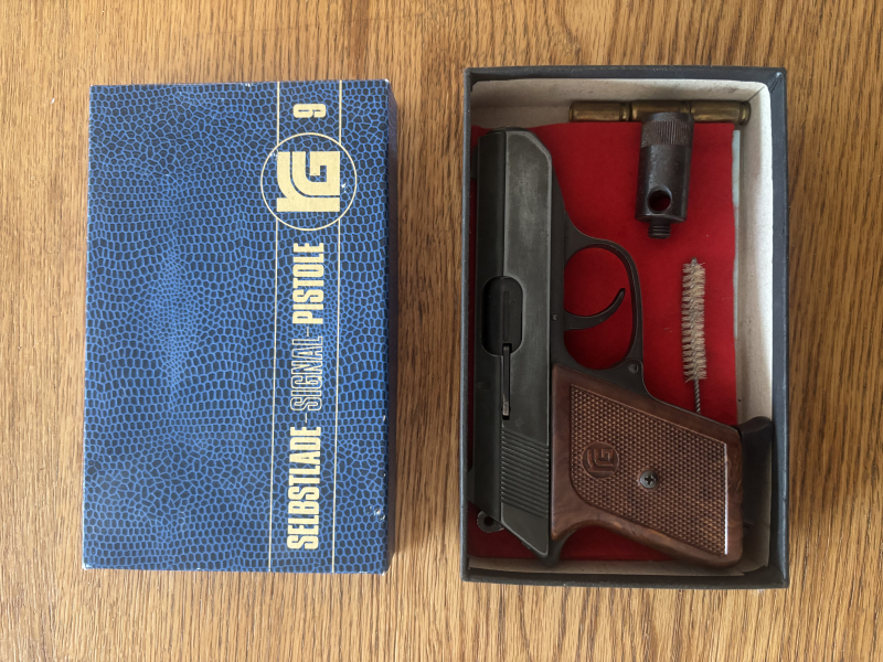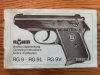 Röhm RG 9, Kal. 8mm. Mit original Zubehör: Putzzeug, Schachtel, Abschußbecher, Handbuch. Die Brünierung ist so auf den Fotos zu sehen zum Teil wegpoliert. Voll funktionsfähiges Modell! Privatverkauf: kein Umtausch, keine Wandlung, keine Garantie, keine Rücknahme, keine Gewährleistung. Bei Fragen bitte vorm Bieten melden! Baureihenzulassung für Pistolen / Revolver PTB-Nr.: 413 Altersnachweis erforderlich!