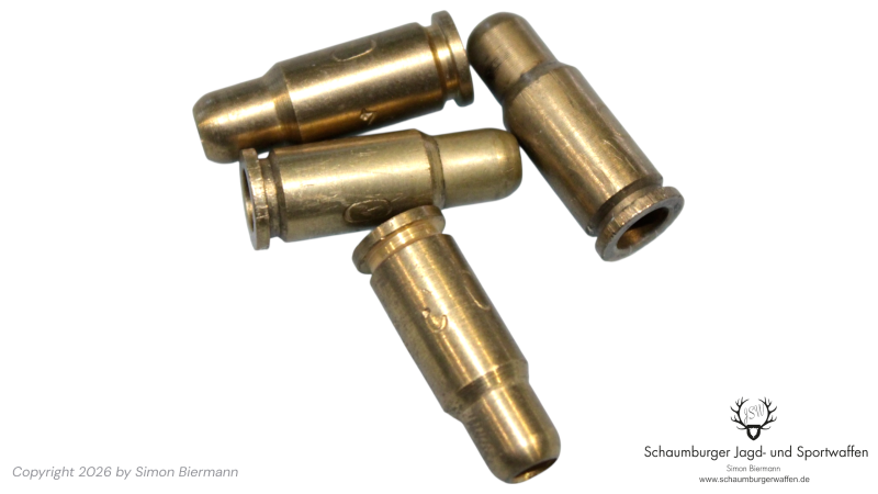 Reduzierpatronen, Einsätze, für Kaliber 7,65mmBrowning, Kal. 4mmM20, 4 Stück, sehr guter Zustand.