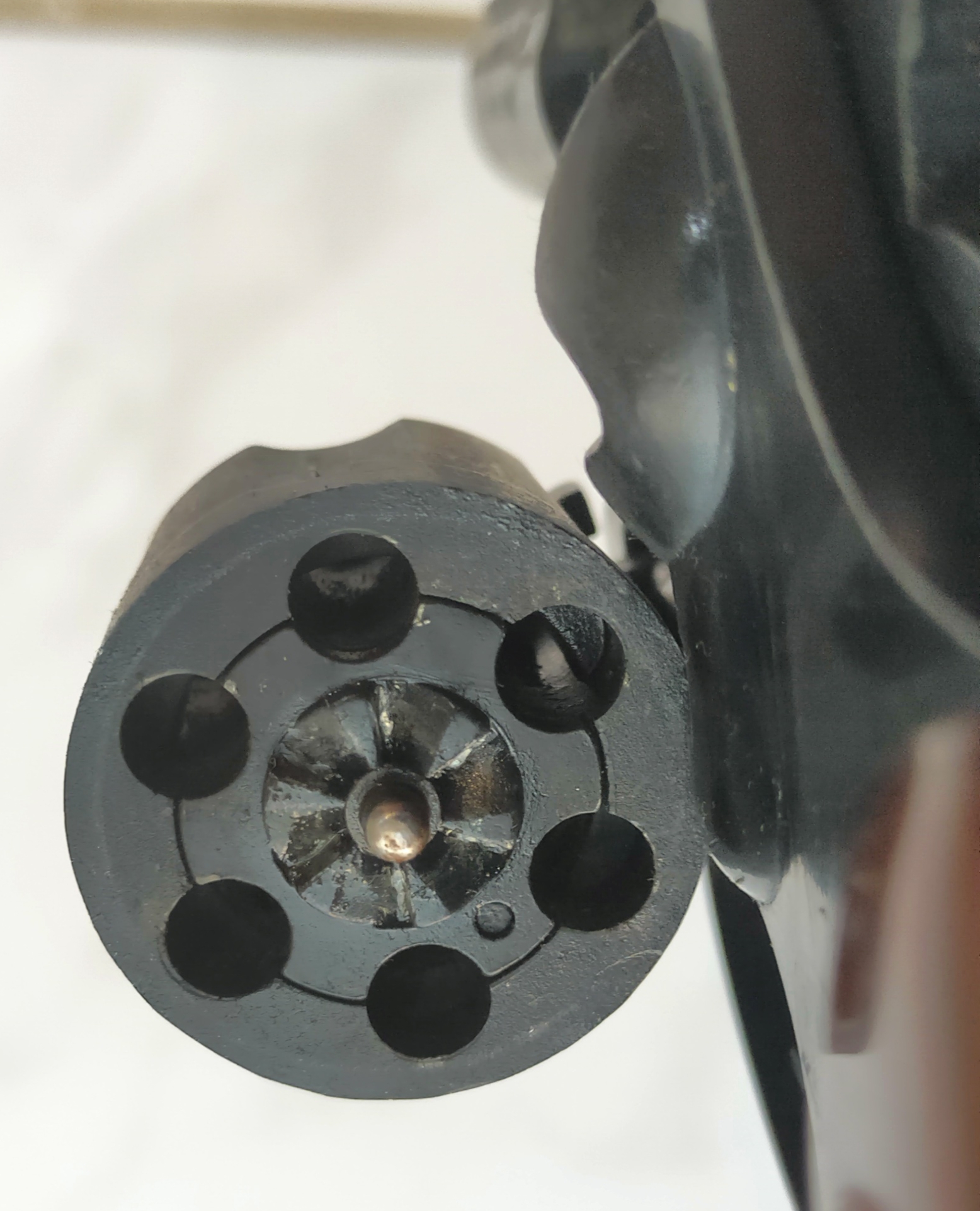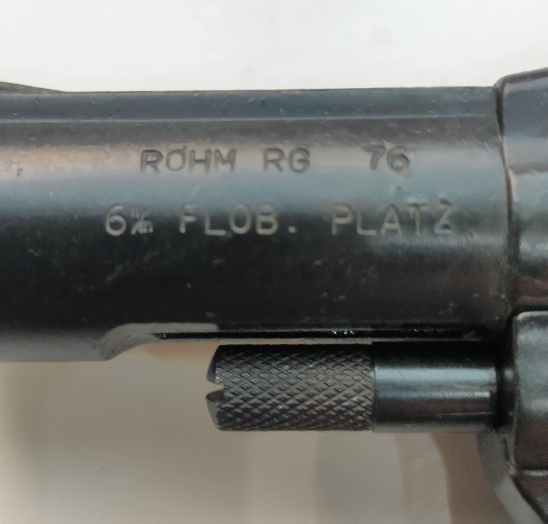 Ich verkaufe hier einen Revolver RÖHM RG76 im Kaliber 6mmFlobert. *m Lauf integrierter Abschußbecher. Nur leichte Gebrauchsspuren, Funktion trocken getestet. Stoßboden und Trommel sehr gut. Seitenplatte links leider mit Kratzer, daher auch der PTB Stempel schlecht lesbar. Vermutlich 4-71.
