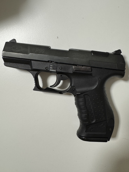 Ich löse die Sammlung meines Vaters auf. Zum Verkauf steht ein hier eine Walther P99 im Kaliber 9mm P.A.K. Die Waffe befindet sich in sehr gutem gebrauchten Zustand. Normale leichte Gebrauchsspuren sind vorhanden (siehe Fotos), technisch funktioniert sie einwandfrei.