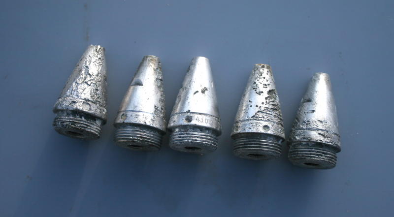 Moin , biete hier 5 Leichtmetall Kz 40 Zünder an. Es handelt sich um einen Bodenfund. Den Zustand bitte nach den Bildern beurteilen. Bei weiteren Fragen gerne eine mail senden.
