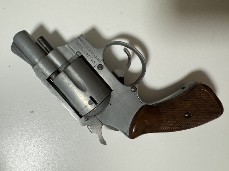 Kompakter Revolver mit Holzgriffschalen, hergestellt in West Germany.