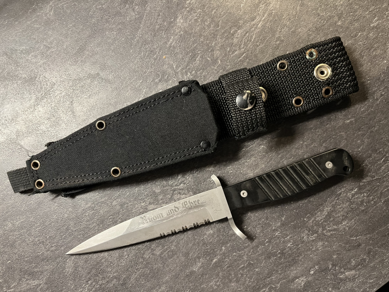Grabendolch 2000 von Böker, Klinge mit Aufschrift Ruhm und Ehre gelasert, Aufschrift berieben, Dolch gehörte BW Soldaten mit Auslandseinsatz, zum Zustand bitte die Bilder vergleichen die Teil der Artikelbeschreibung sind. Privatverkauf ohne Gewährleistung und Rücknahme. Altersnachweis erforderlich.