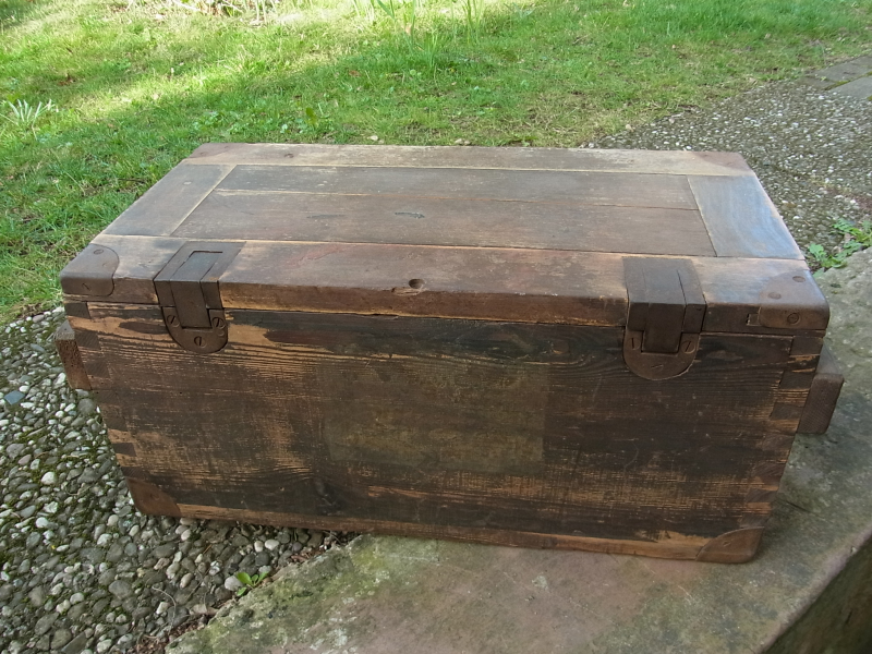 Sehr seltene Kiste, Speicherfund. Der Holzwurm ist augenscheinlich nicht mehr drin.
