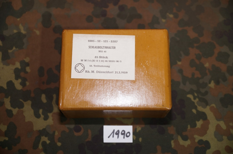Achtung aufgepasst: sie bieten hier auf 25 Stück originale MG42 / MG1 Schlagbolzenhalter. Zustand, siehe Foto. Sie erhalten genau die auf dem Foto abgebildeten Ersatzteile. Bei allen von uns angebotenen Ersatzteilen handelt es sich um frei verkäufliche Ersatzteile. Beachten Sie auch unsere weiteren Auktionen.
