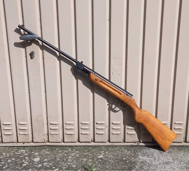 Hallo, hier bieten Sie auf ein Luftgewehr des Herstellers Haenel aus dem thüringischen Suhl, Modell I-53. Es ist aus den 50er Jahren und noch aus DDR Produktion, solide Technik, alles aus Metall oder Holz, kein Plastik.