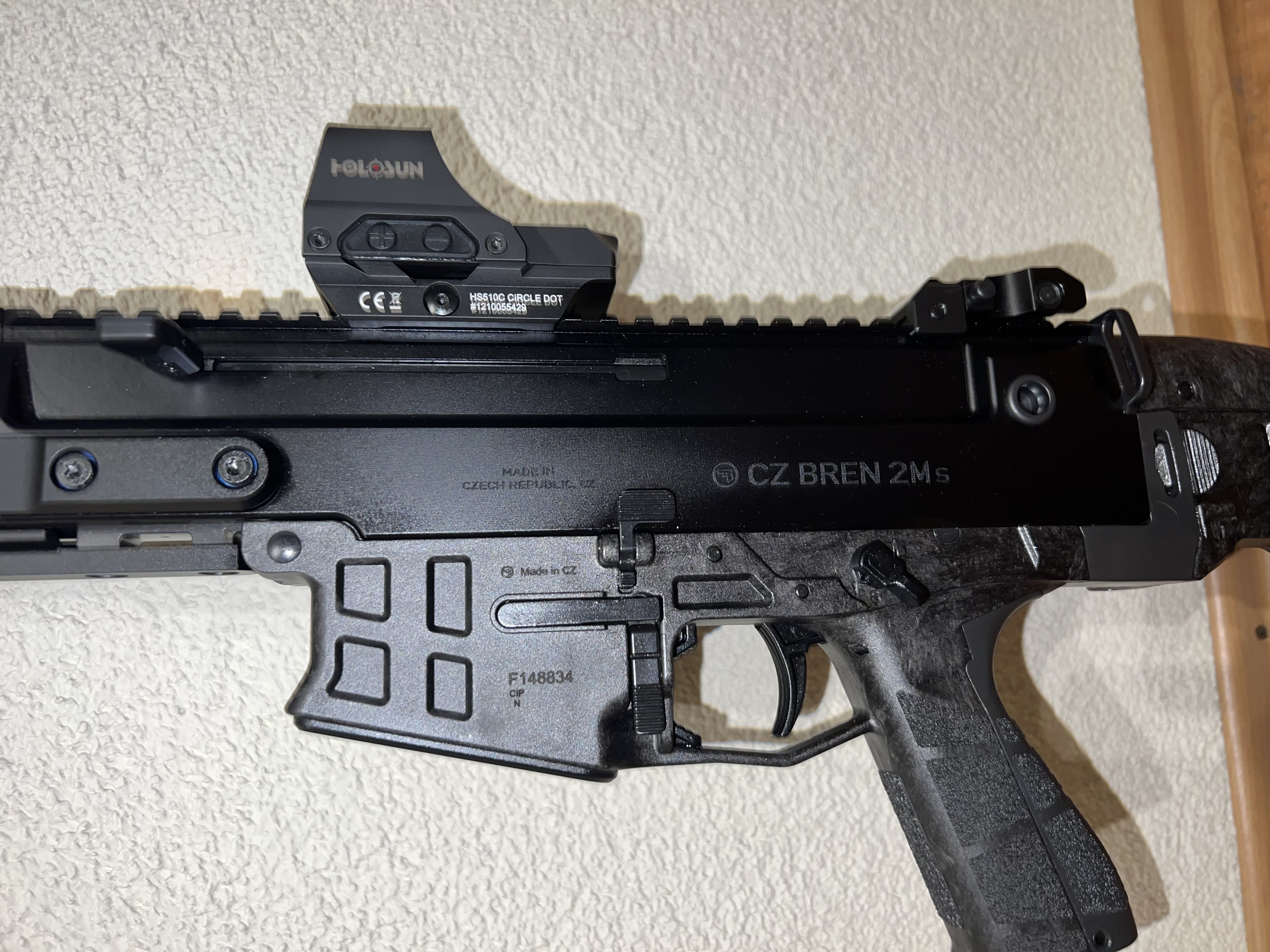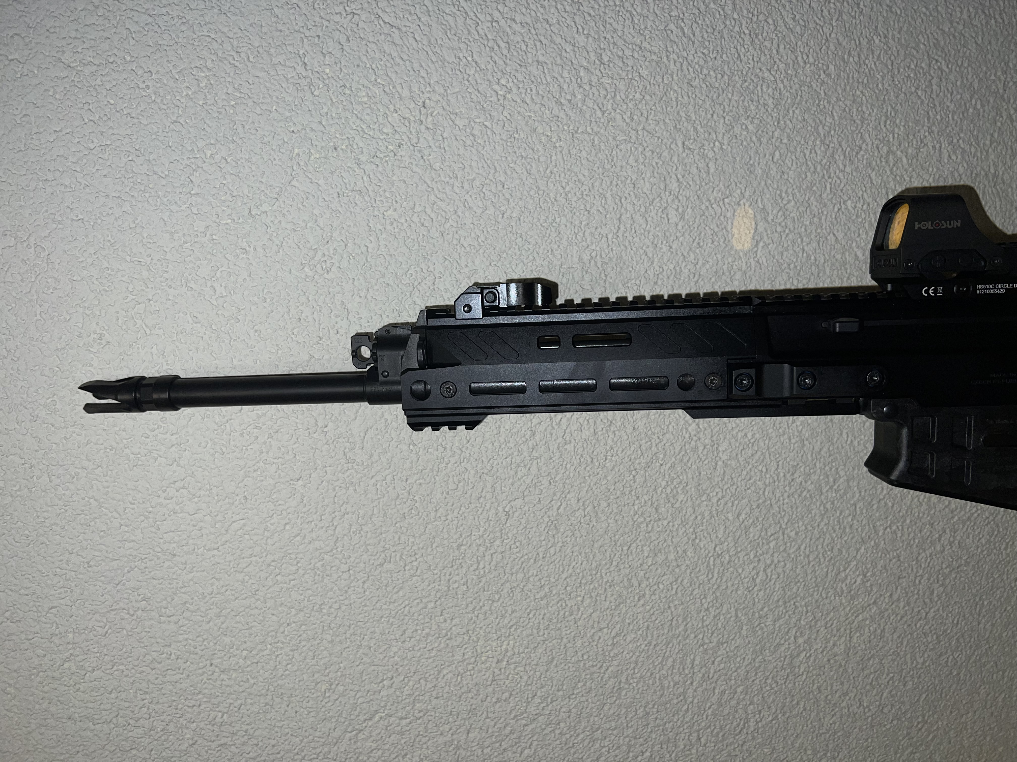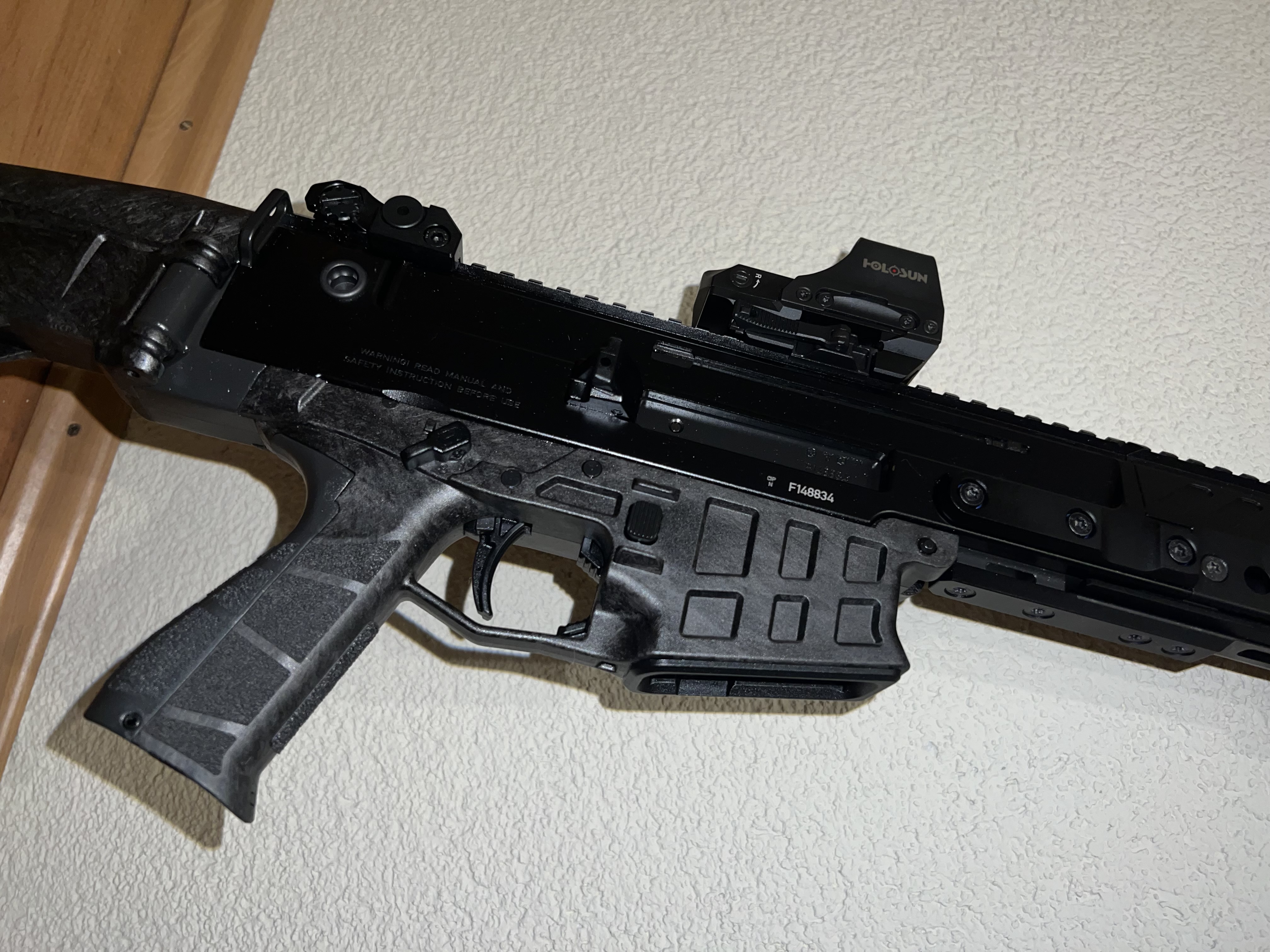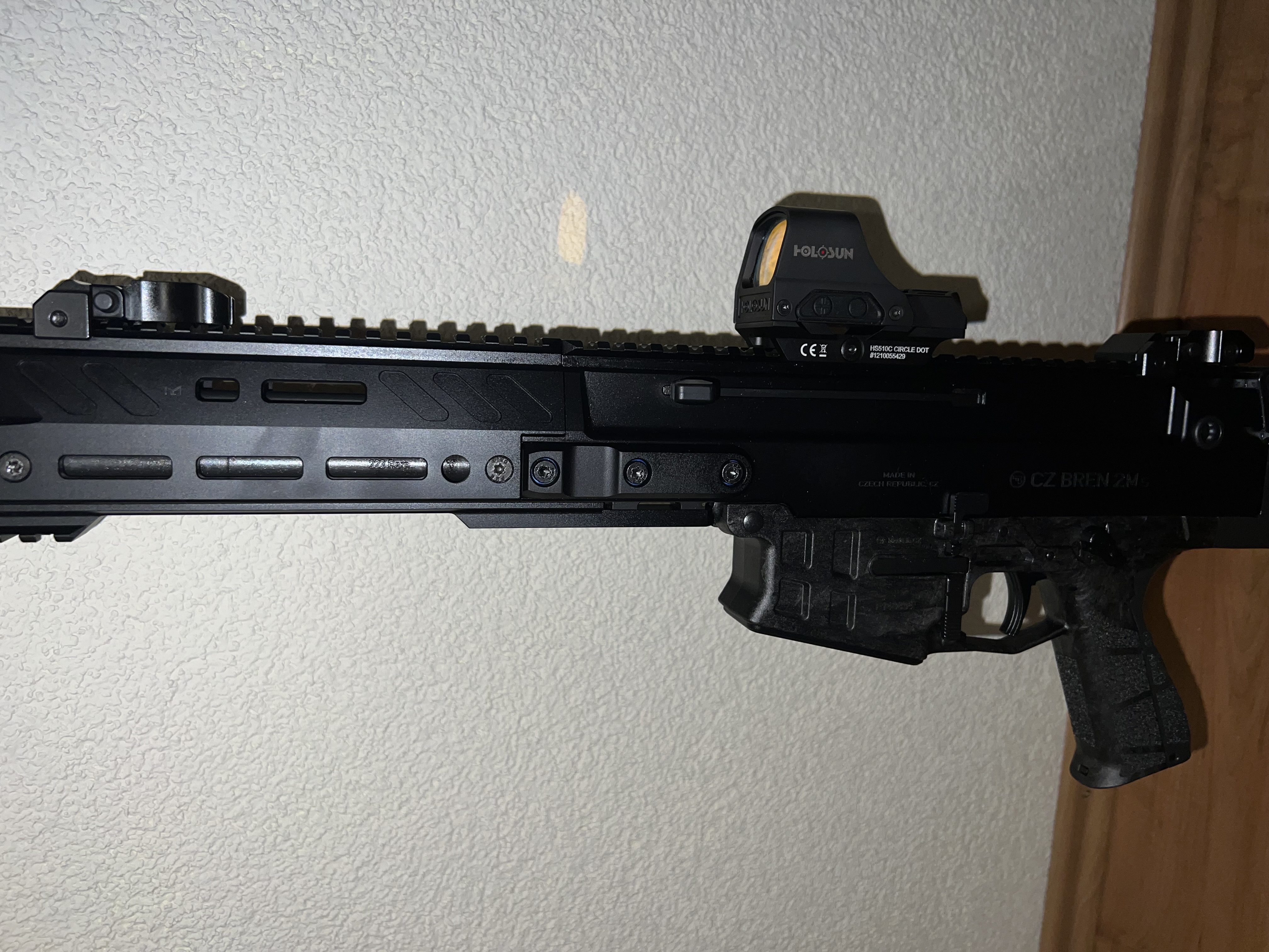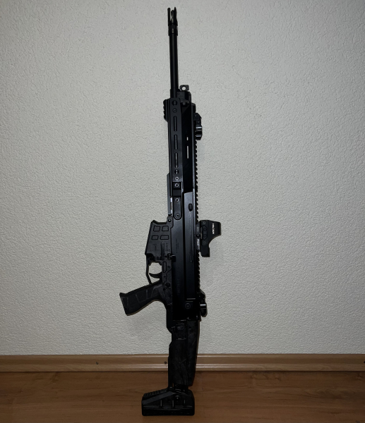 Die Waffe ist im Kaliber .223 Rem, kommt mit mehreren 10 Schussmagazinen, plus Zubehör siehe Bilder. Die Holoson Optik ist ebenso mit inbegriffen.