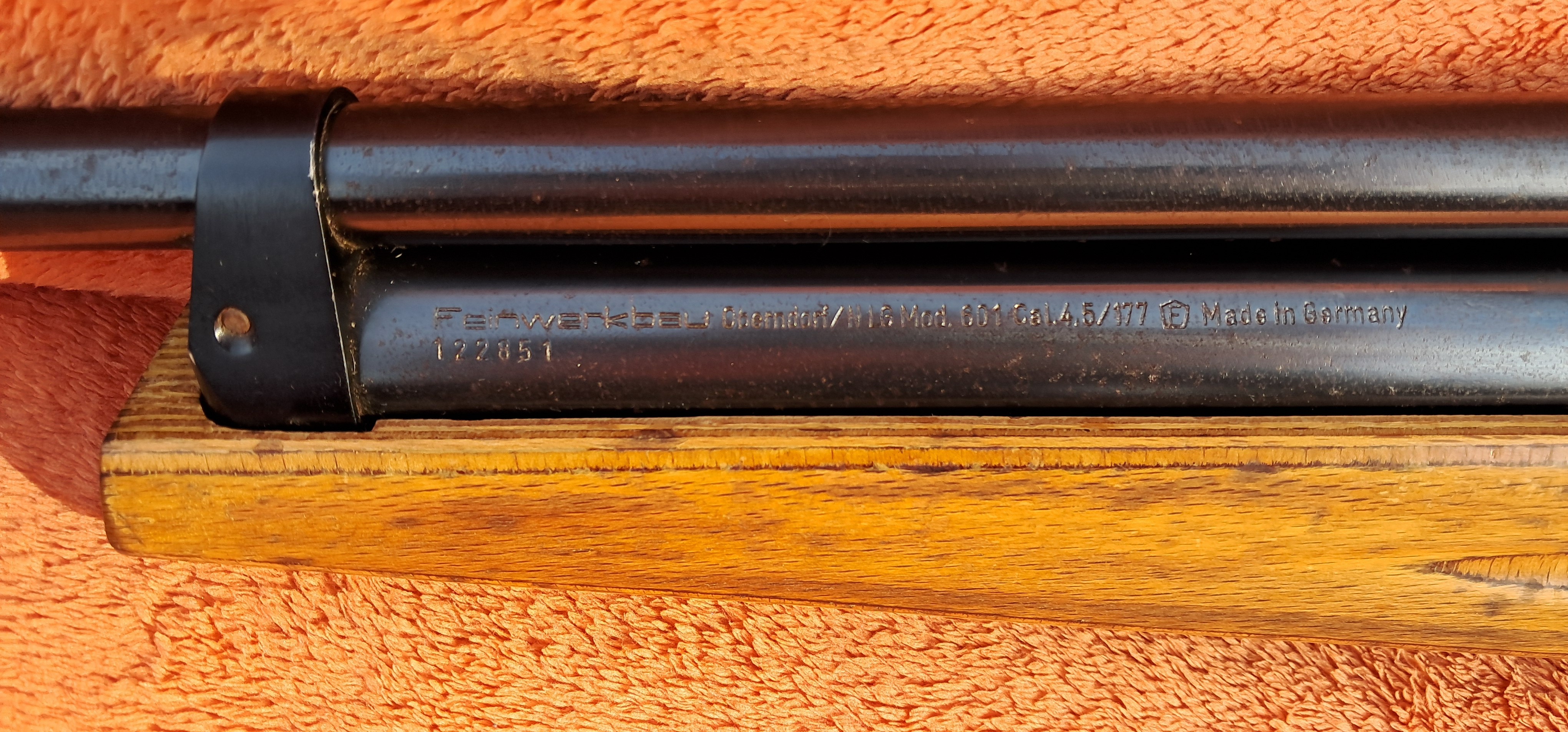 Das Luftgewehr präsentiert sich in einem gebrauchten Zustand mit Gebrauchsspuren die über die Jahre leider einfach nicht ausbleiben wie Flugrost auf den brünierten Teile und einigen Schaftmacken – was über die Jahre nun einmal so kommt.
