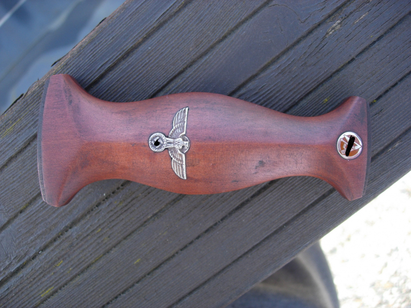 SA-Dolchgriff Holz Neusilberadler- Pastille mit Nietstift.