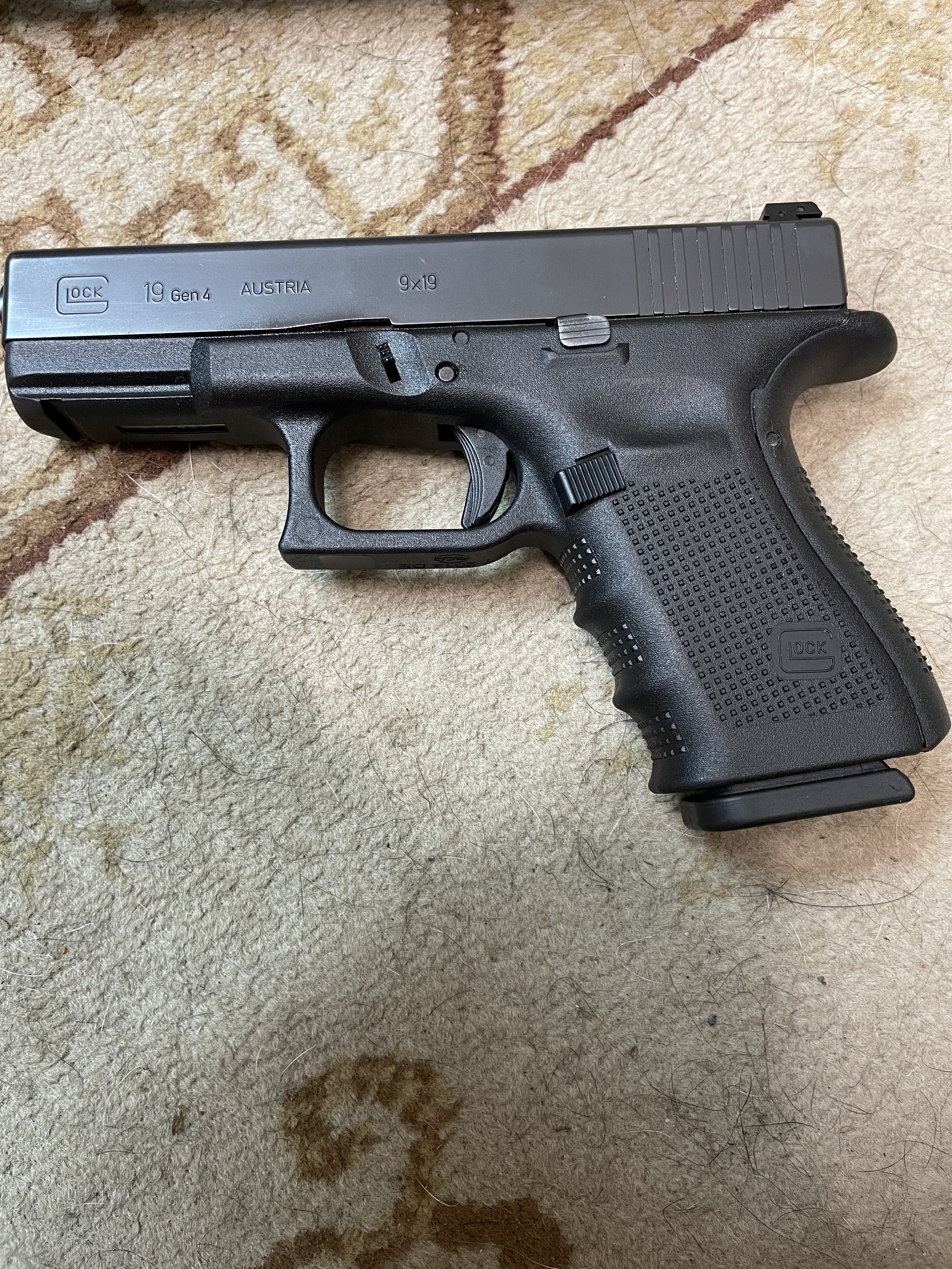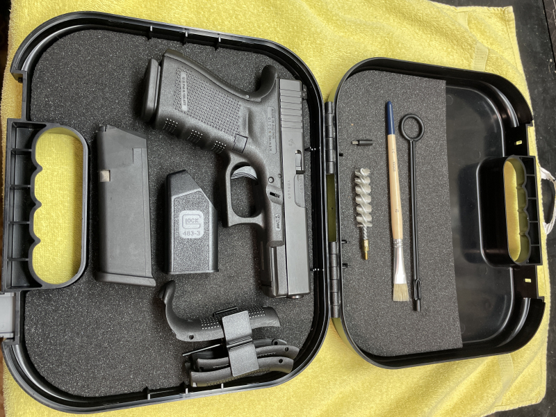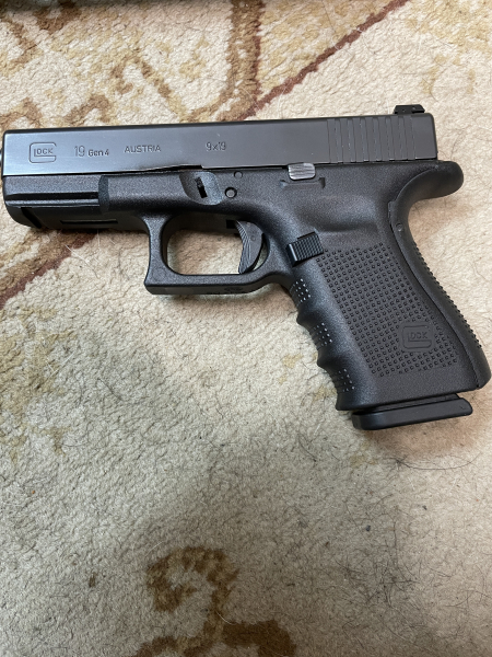 Verkaufe eine Glock 19 Gen4 Selbstladepistole im Kal. 9x19 Luger. Die Waffe stammt aus Jägerbesitz mit ganz geringer Schussbelastung (Schrankwaffe), der Zustand ist Neuwertig, lediglich am Pistolenkoffer fehlt ein Verschluß. Geliefert wird wie auf den Bildern mit dem für die Gen 4