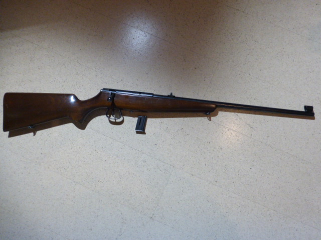 Ich verkaufe ein gut erhaltenes Kleinkalibergewehr der Marke Kriegeskorte Stuttgart im Kal. 22 lr. Das Gewehr besitzt eine sehr schöne Originalbrünierung. Eine Klappkimme für 50, 75 und 100 Meter. Ein 5 Schuss Magazin ist in der Auktion enthalten. Am Schaft sind ein paar Gebrauchsspuren, aber keine große Schrammen. Das Gewehr ist wie alle Krico-Waffen sehr gut verarbeitet.