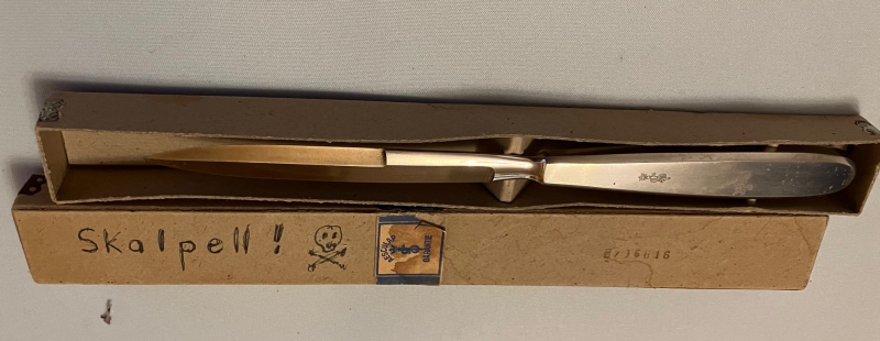 Schlankes medizinisches Messer, Dolchform, Skalpell, Gesamtlänge 235 cm... Schneide ca. 11 cm, Griff Aluminium. -siehe Fotos- Privatverkauf im Auftrag eines Freundes.