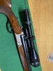 Mittels Schwenkmontage ist ein (ebenfalls in gutem Zustand) Zielfernrohr von Schmidt und Bender 2,5-10x56 mit dem Absehen 4 montiert, welches mit zur Auktion gehört und auf der Waffe verbleibt.