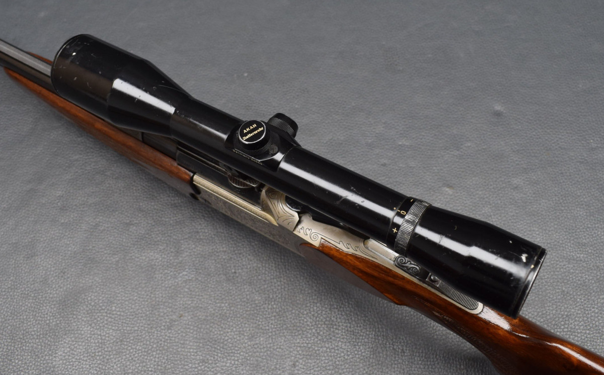 Doppelabzug mit Rückstecher, Abzugsbügel aus Kunststoff, Montiert mit AKAH 6x42Absehen 1, mittels SEM Montage.