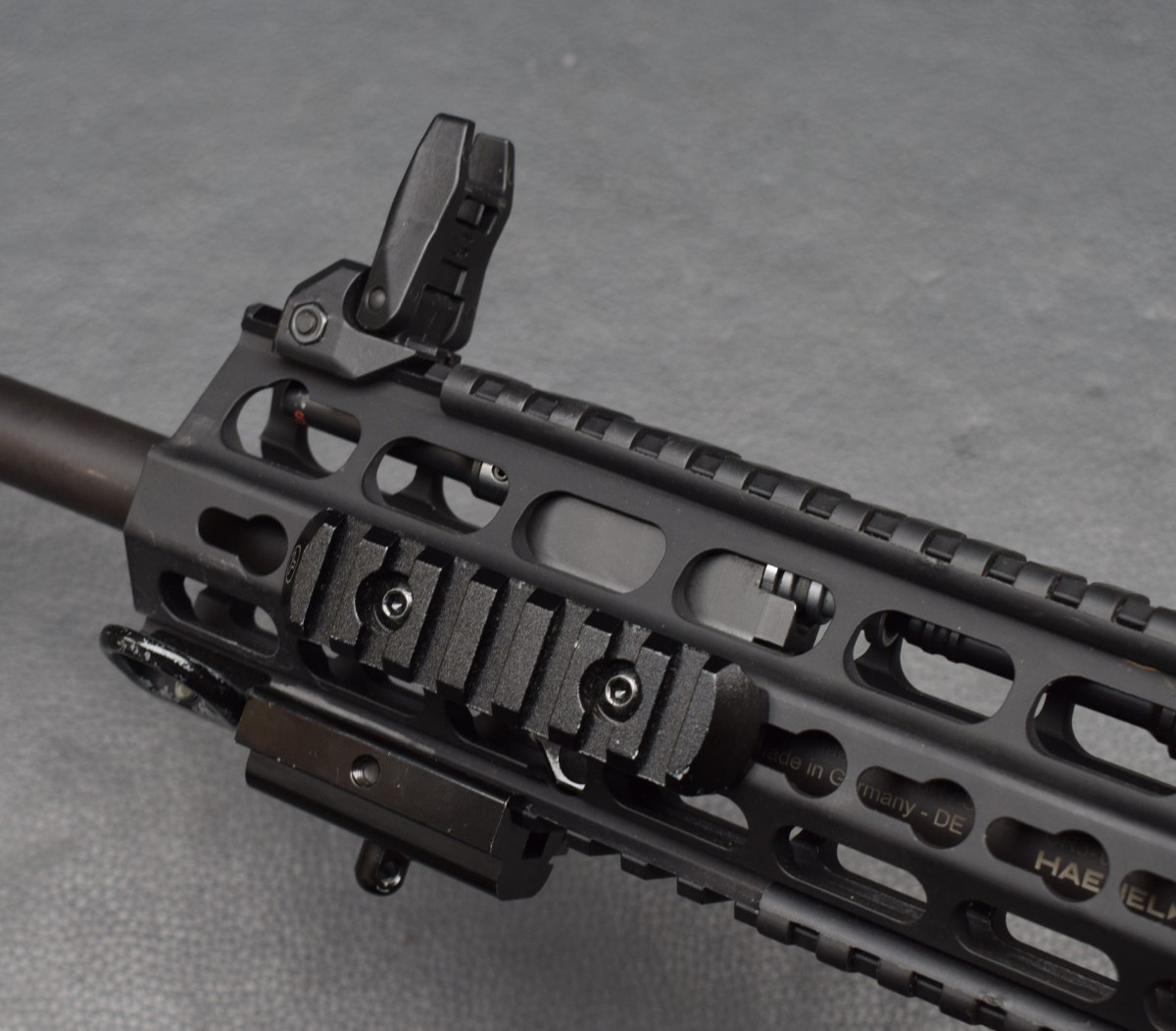 Handschutz: Handschutz mit zwei NAR und zwei KeyMod Schienen, werkzeuglos abnehmbar,