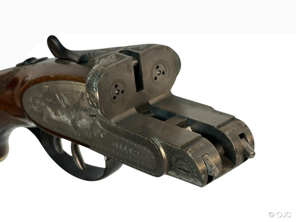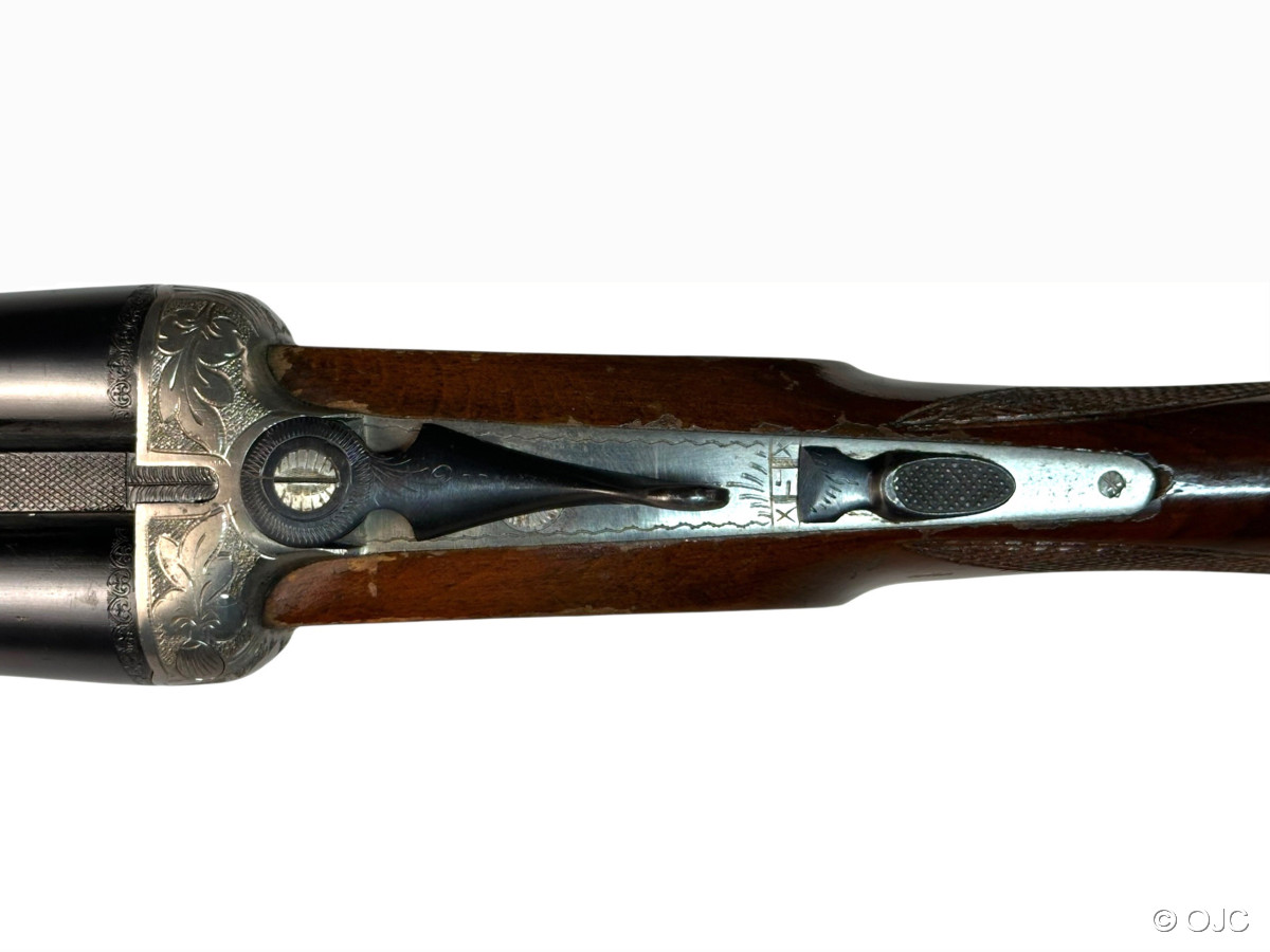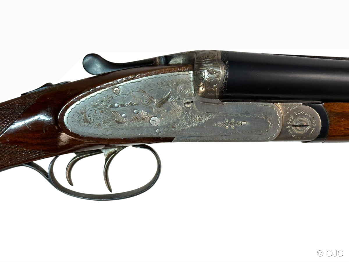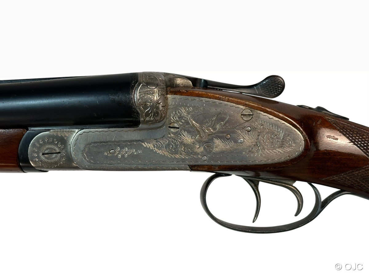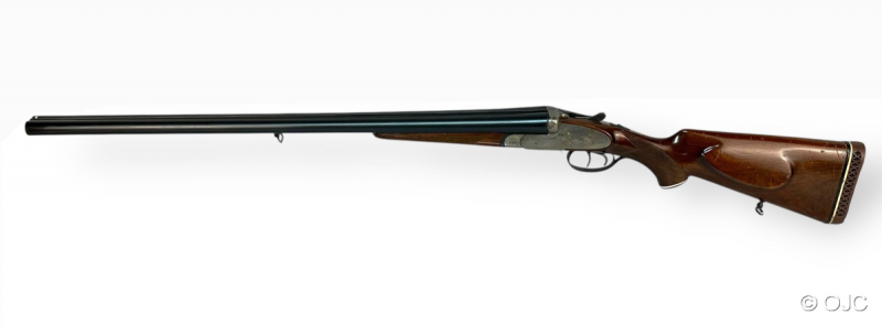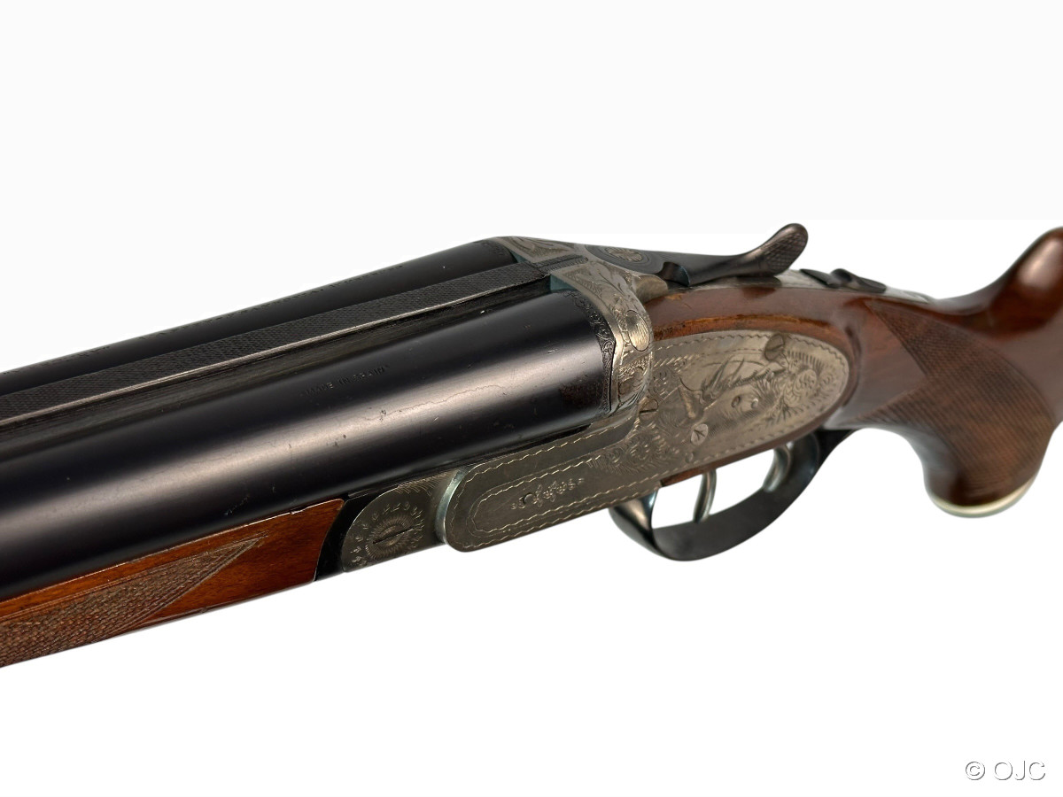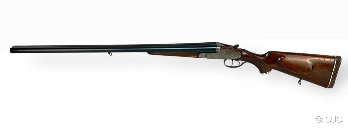Hier versteigern wir einen echte spanische Seitenschlossflinte, Modell "Mercury", im Kaliber 12/70. Die Flinte ist mit einem typischen Doppelabzug, einem Hülsenanheber und einer automatischen Sicherung ausgestattet. Inklusive Riemenbügel.