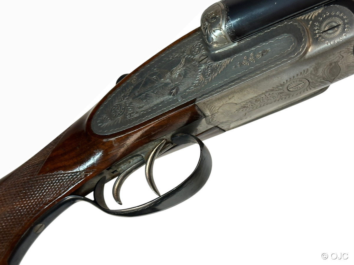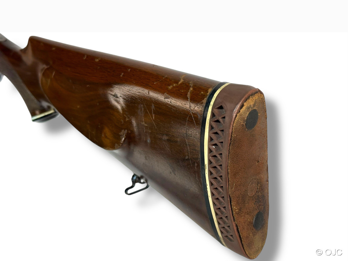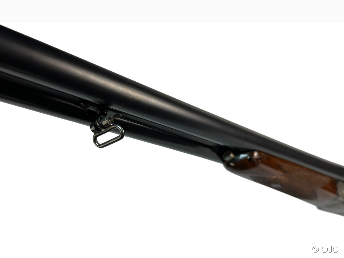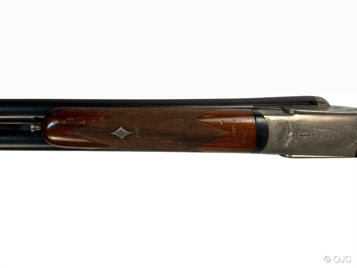 Es handelt sich um eine Gebrauchtwaffe in technisch gutem Zustand. Äußerlich finden sich ein paar typische Gebrauchsspuren (Kratzer im Schaftholz, marginaler Brünierungsabrieb,....) siehe Fotos und Detailaufnahmen. Die Läufe sind blank und die Basküle ist absolut dicht. Die Schlossmechanik funktioniert einwandfrei.
