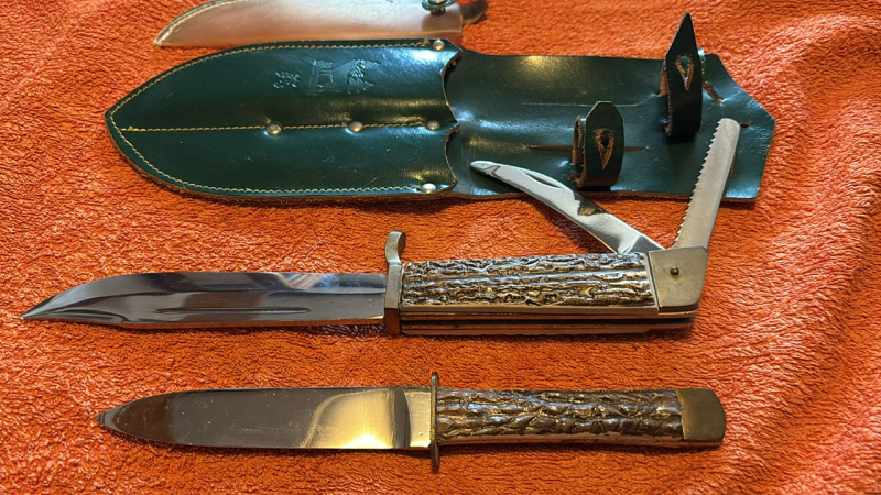 Dies DDR Jagdbesteck hing jahrelang im Treppenhaus und ist m.M. nach für die "Machart" in einem guten Zustand.