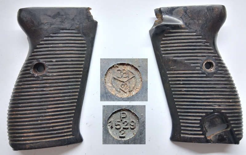 Angeboten ist sind Griffschalen Bakelit Original für Pistole Walther P38.
