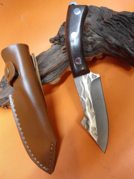 interessant und gut gearbeitetes Messer mit Griffschalen aus Holz