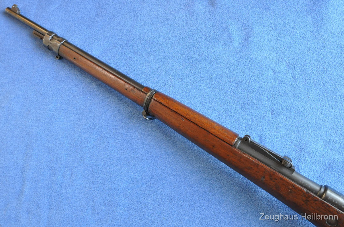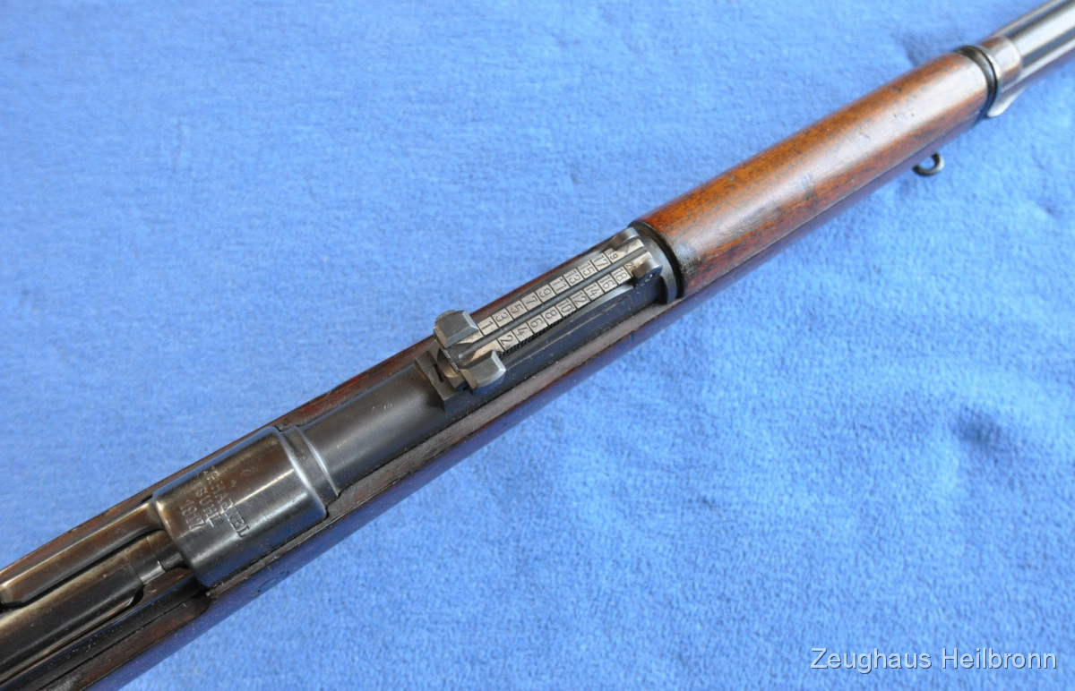 Waffe in einem guten Zustand, siehe Bilder, Lauf blank, volle mechanische Funktion. Nach der Einführung der allgemeinen Wehrpflicht waren 98k Mangelware, besonders die Parteiverbände wie SA und SS mussten ihre Waffen selber organisieren da die Wehrmacht die Neufertigungen für sich beanspruchte. So wurden u.a. viele Gewehr 98 aus dem 1. WK modifiziert, teilweise mit neuen Schäften und Läufen, teilweise auch nur mit neuen Visieren wie die vorliegende Waffe.