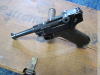 Selbstladepistole Mauser 08 im Kaliber 9 x 19 mm im Auftrag zu verkaufen. Baujahr 1941 mit Mauser-Tonne, Nummerngleich bis auf die beiden Magazine, die umgestempelt wurden. WaNr: 800x. Die Waffe ist in einem hervorragenden Zustand mit einer nahezu makellosen Brünnierung. Sie sieht aus, wie wenn sie wenig geschossen und nur im Holster getragen wurde. Es sind keine modernen Beschußstempel vorhanden. Adler mit L auf der rechten Seite, Adler mit N links auf dem System. Rohrmaß 8,82 auf der untern Laufseite. Scharfe Züge und Felder in einem blanken Lauf. Bakelit-Griffschalen mit Fischhaut; Pistolentasche aus Leder.
