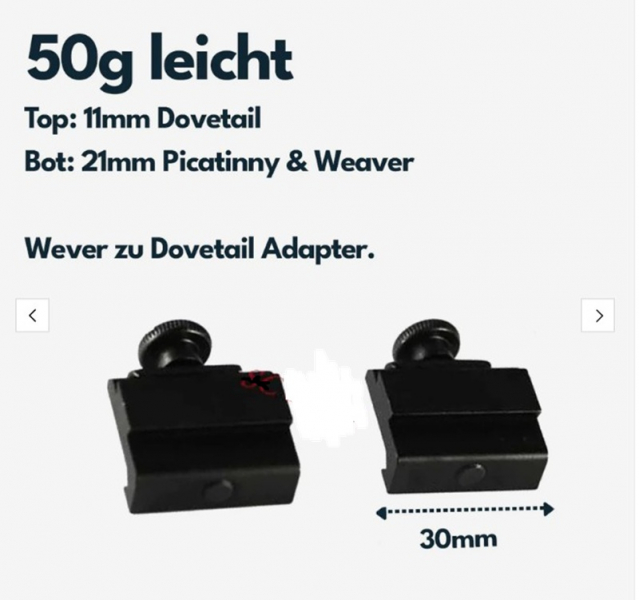 Schienenadapter von 21mm zu 11mm aus Aluminium.