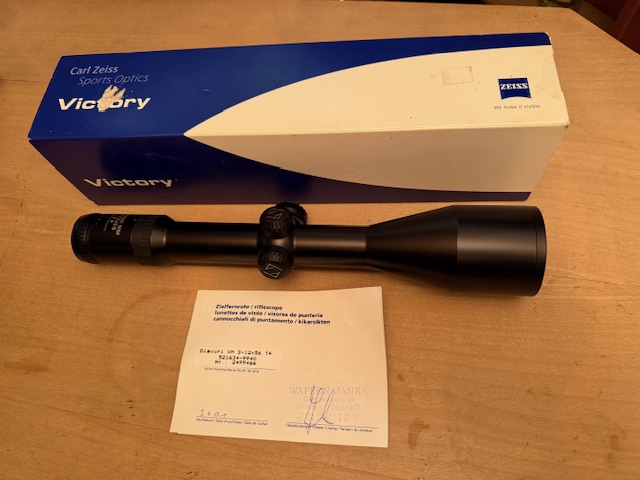 Wegen Überbestand verkaufe ich mein Zeiss Diavari VM in 3-12x56 mit Absehen 40 in der 1. Bildebene. Das Glas war fast ausschliesslich im Schrank und hat jagdlich bisher wenig erlebt. Es hat eine Beleuchtung. Am Okkular gibt es einen Kratzer (siehe Fotos), der die Funktionsweise in keinster Weise beeinträchtigt. Der Karton ist eigentlich von einem anderen Zeiss ZF, gebe ich aber dazu. Gerne kann das Glas bei mir besichtigt werden. Da Privatverkauf keine Garantie, Gewährleistung oder Rücknahme.