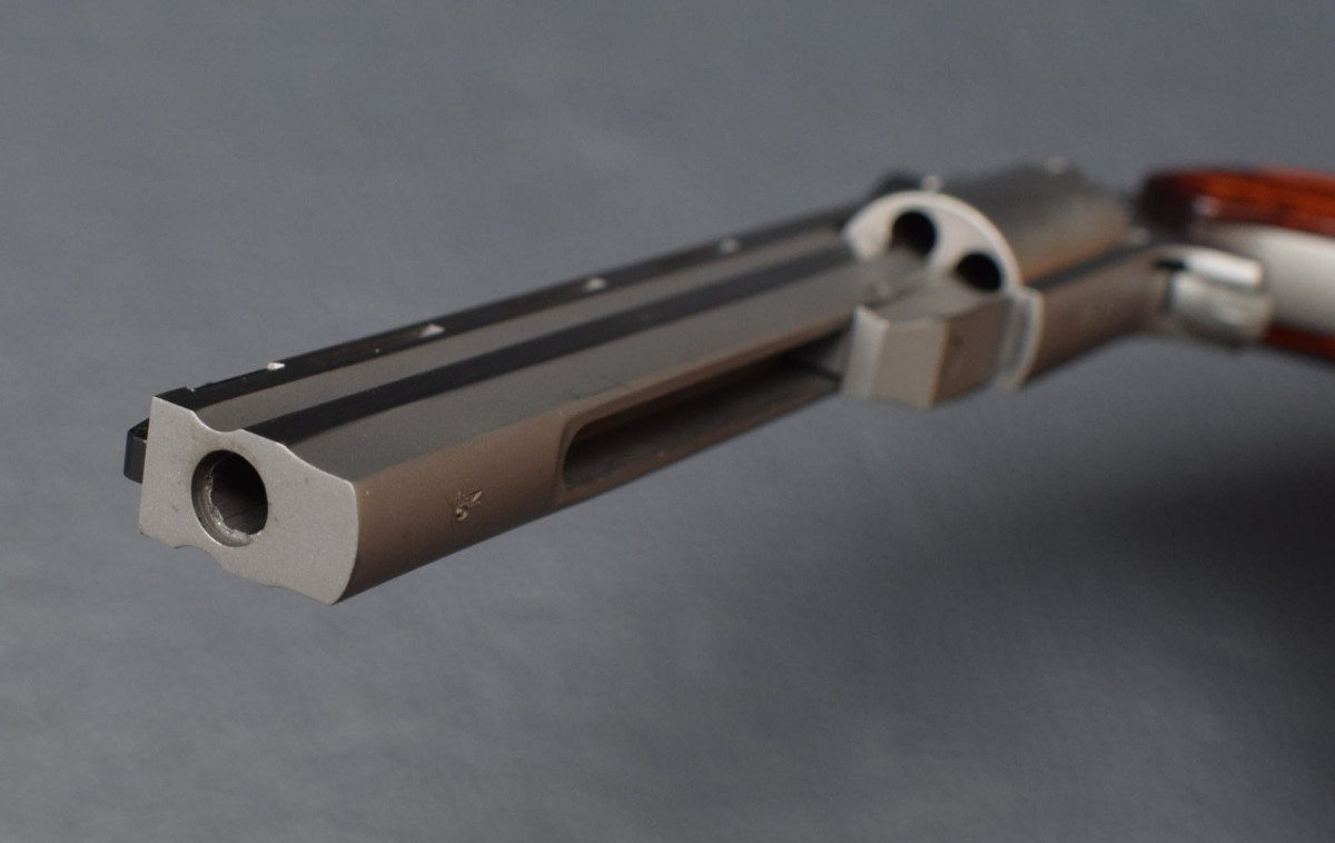 kleiner SAA Revolver mit 4" Lauflänge, Korn wechselbar, starre Visierrung,